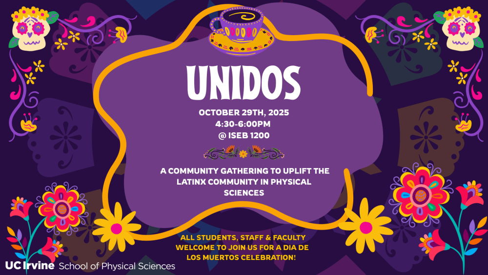 Fall into community with Unidos in Physical Sciences! Join us for an evening of connection, good food, and great conversation. Unidos is a community gathering meant to uplift the Latinx community in Physical Sciences. All students, staff and faculty welcome to join us for a Dia De Muertos celebration!